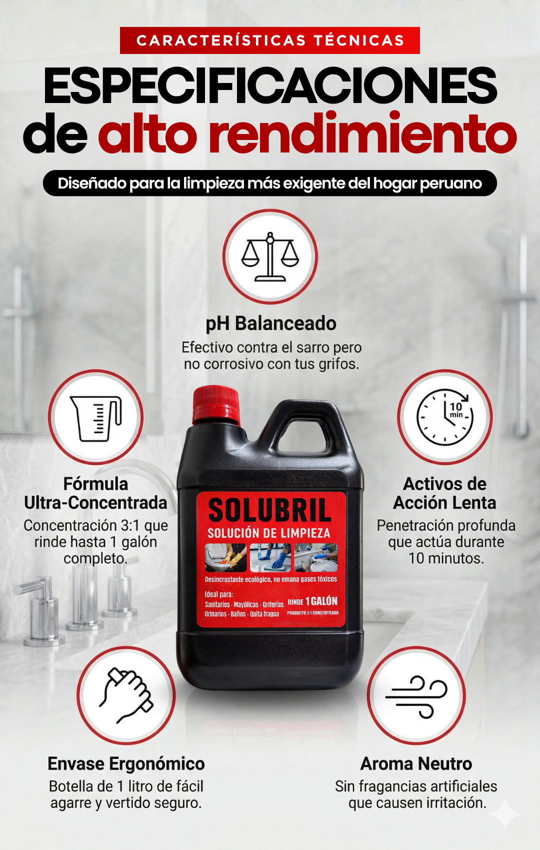 ✅ Efectividad total — Ataca el sarro y el moho más difícil desde el primer uso 💧 Rinde 4 veces más — 1L concentrado = 4L de limpieza extrema.